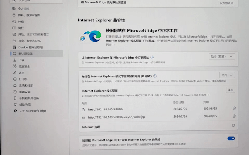 然后在默认浏览器中关联IE浏览器,并将OA的网址关联到IE浏览器中。这一步很重要。