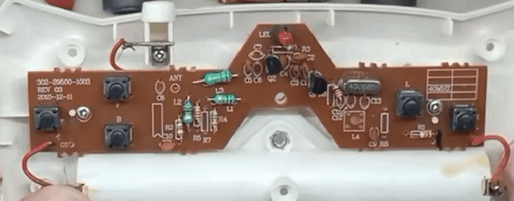 它有5个轻触开关分别是前、后、左、右、倒退,晶振是40.658Mhz;主控芯片是TX-2B