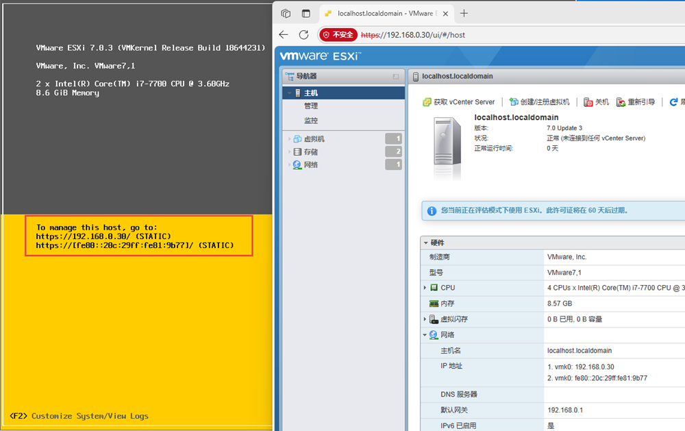 登录的ESXI地址也要修改为同一个网段;
