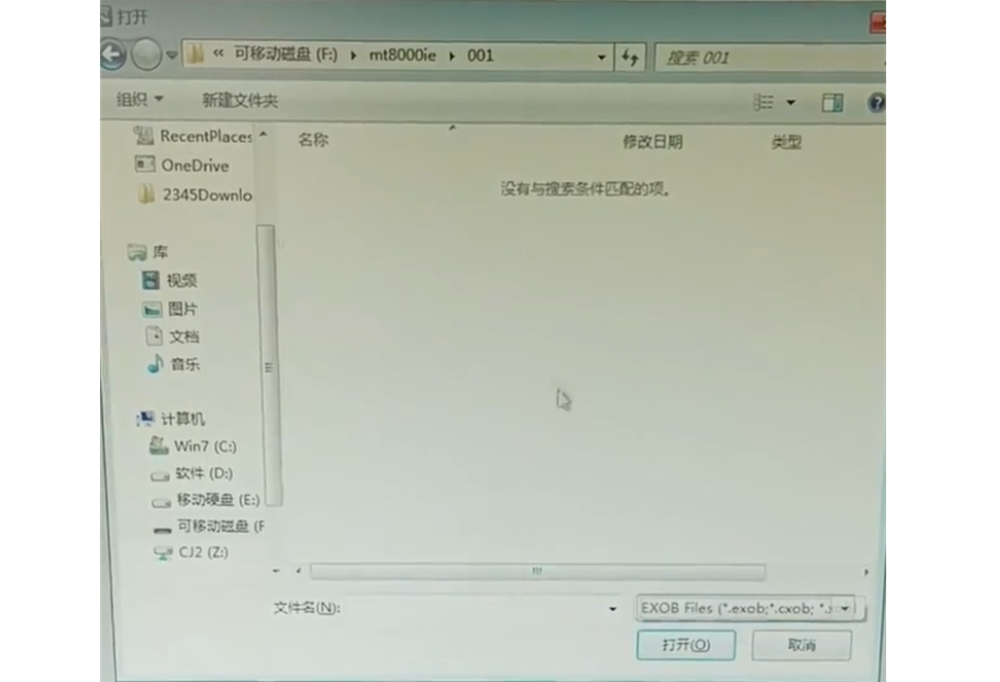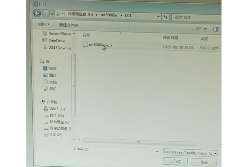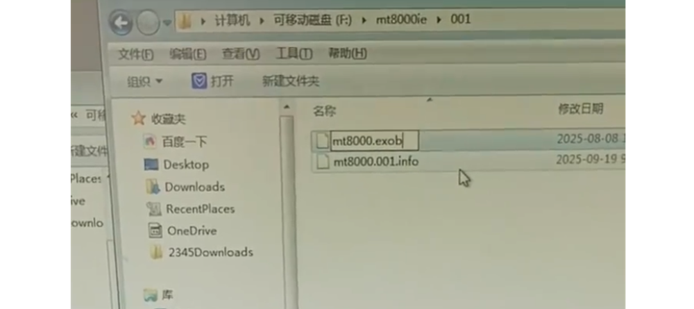 6、此时打开优盘中的001文件夹,将里面的mt8000加一个exob扩展名即可。