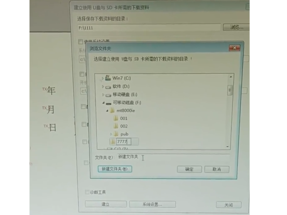 10、对程序修改完成后,点击软件中的"工程文件"——–"建立下载数据"——–"浏览"选择优盘的保存位置,U盘/mt8000ie/新建一个文件夹7777,不能含有中文;确定后再点击"建立"就可以了;