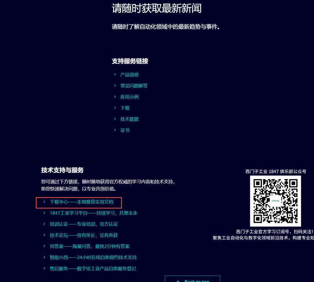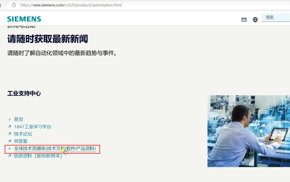 在工业支持中心找到全球技术资源库(技术文档软件产品资料)
