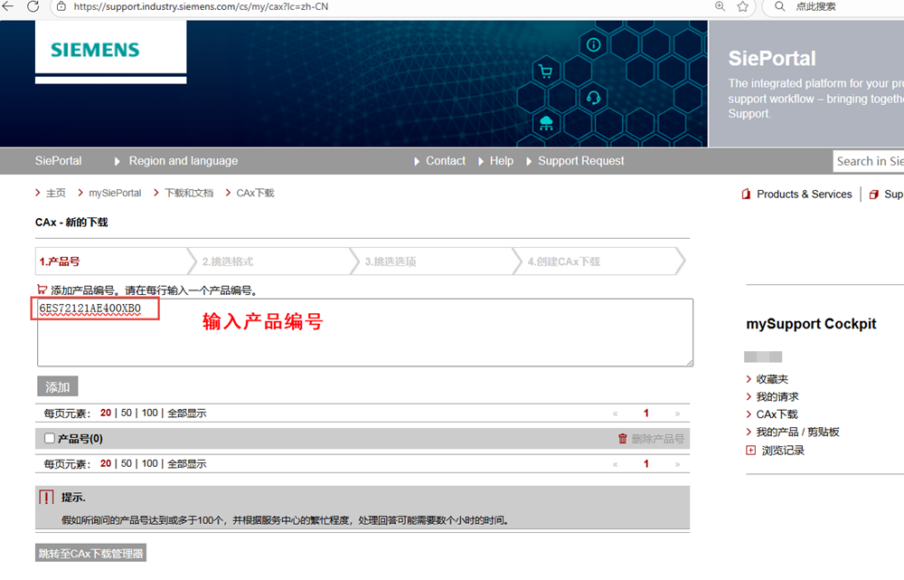 添加需要下载的产品编号,一定要知道西门子产品的订货号才可以;