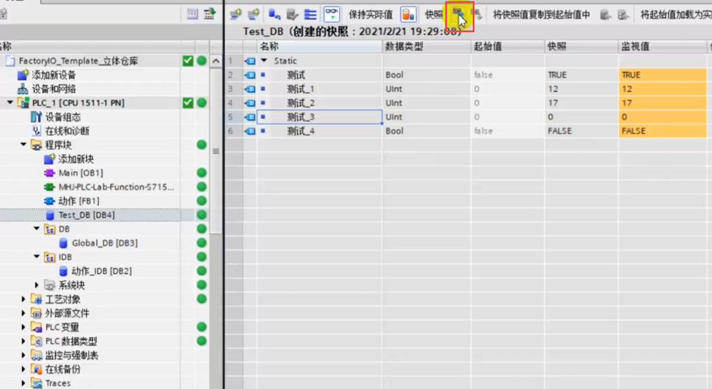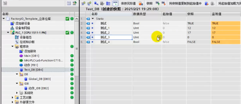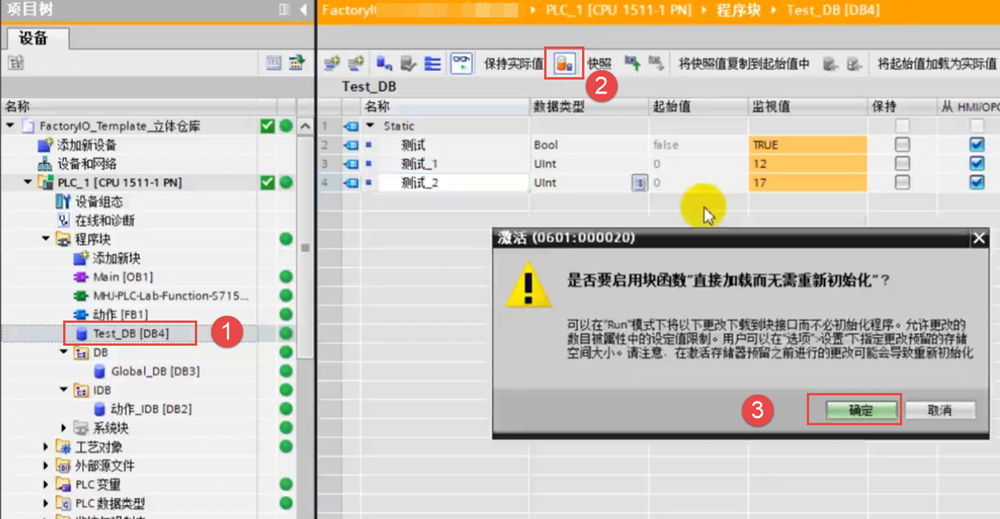 修改博途DB块中的数据下载到PLC实现不重新初始化功能
