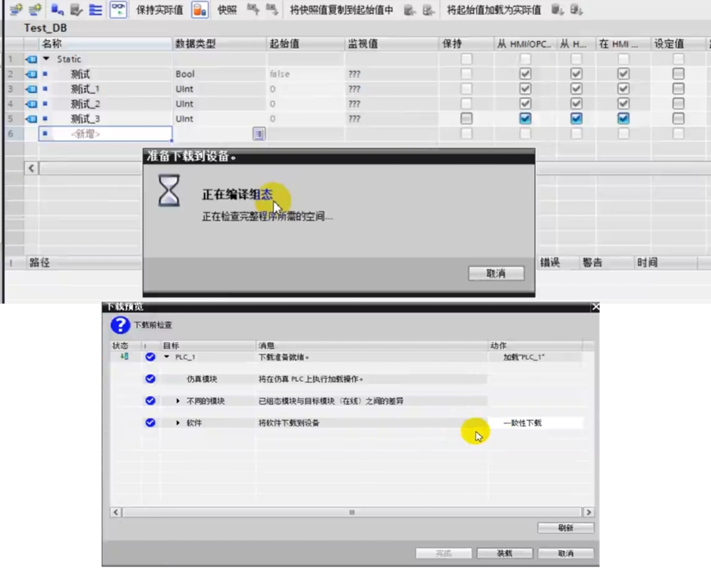 但是在这个新建的DB块中新建数据时,然后再进行下载是需要进行初始化的;