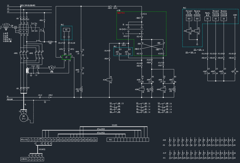 -XX.WG1 和 -XX.WG3: 表示线束编号 ATxx.WC1, ATxx.WC2: 表示线束到控制柜的连接