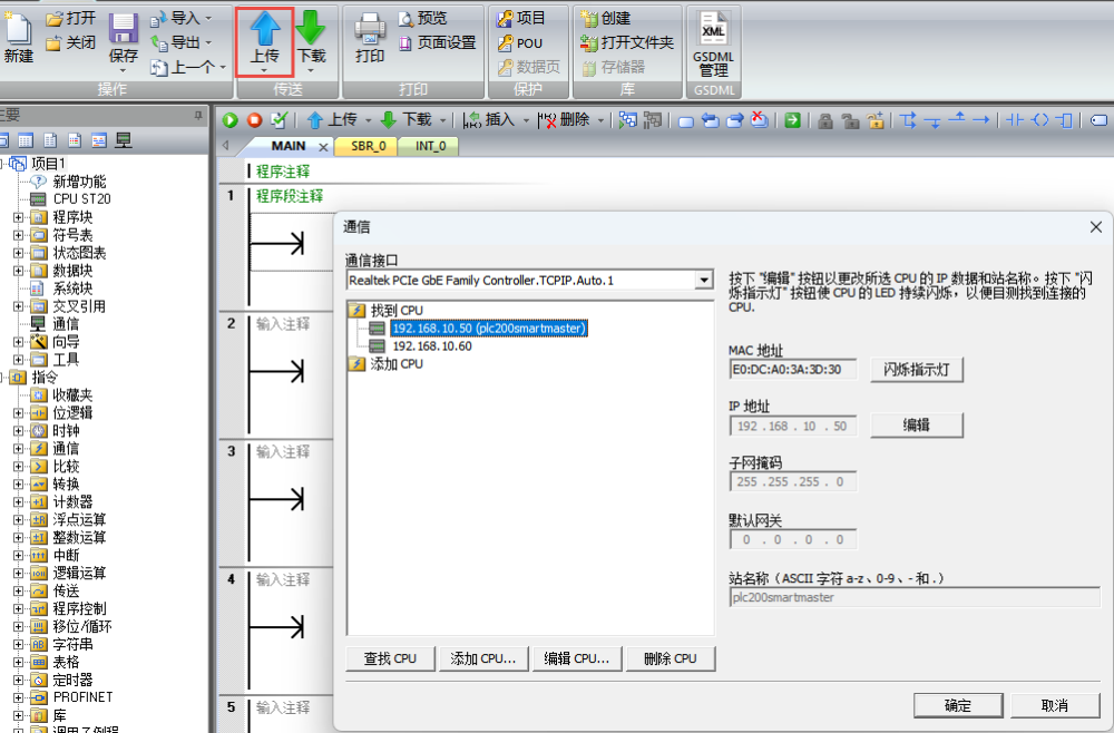1、如果不对PLC进行加密的话,直接点击上传就可以将PLC中的程序上传到电脑中进行修改。这样也就没有任何的保护措施;