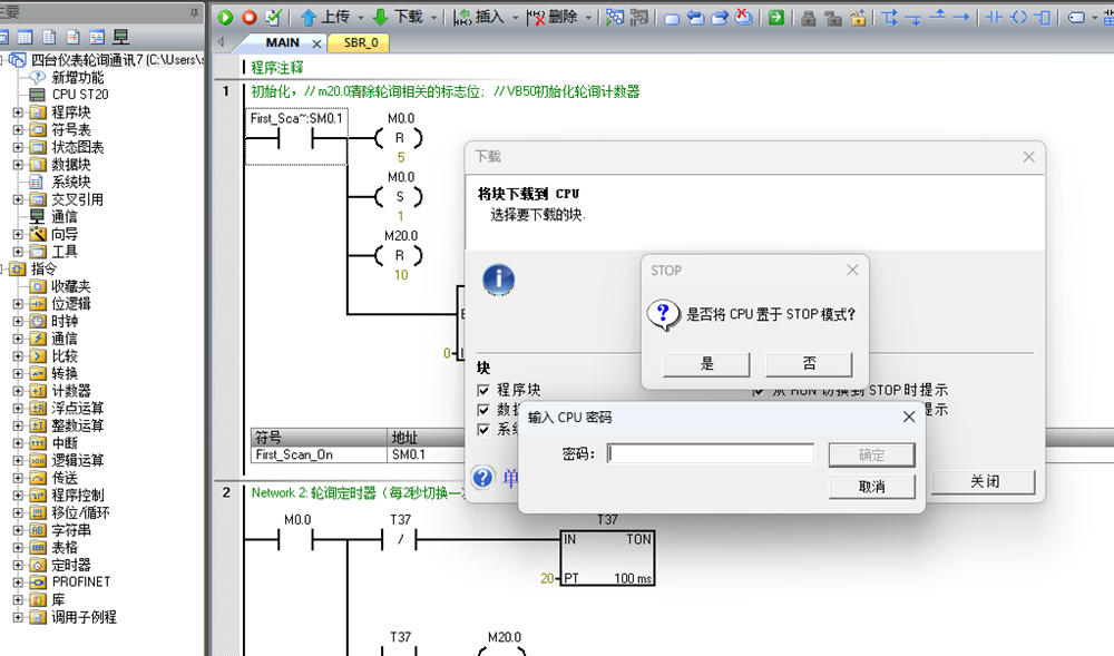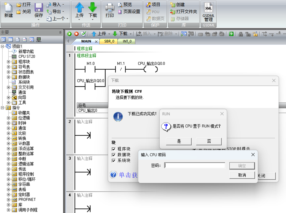 5、打开一个别的项目并将其下载到这个加密的PLC中,此时输入正确的密码;