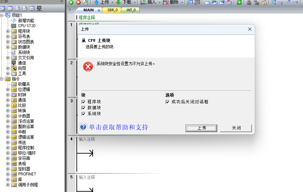 4、此再打开一个空项目对PLC进行上传,就算手里有密码也不允许上传。