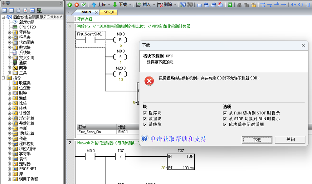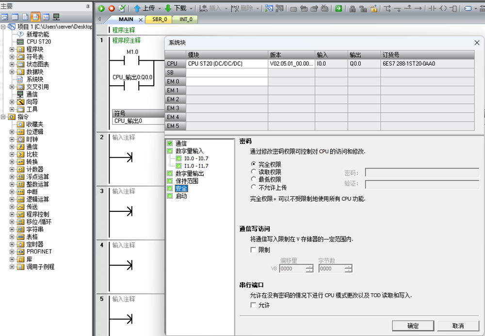 4、此时如果对原有加密的源程序,取消加密了,就可以在系统块中的"不允许上传"改为完全控制,并下载到PLC中,这样就不对PLC项目进行保护了。