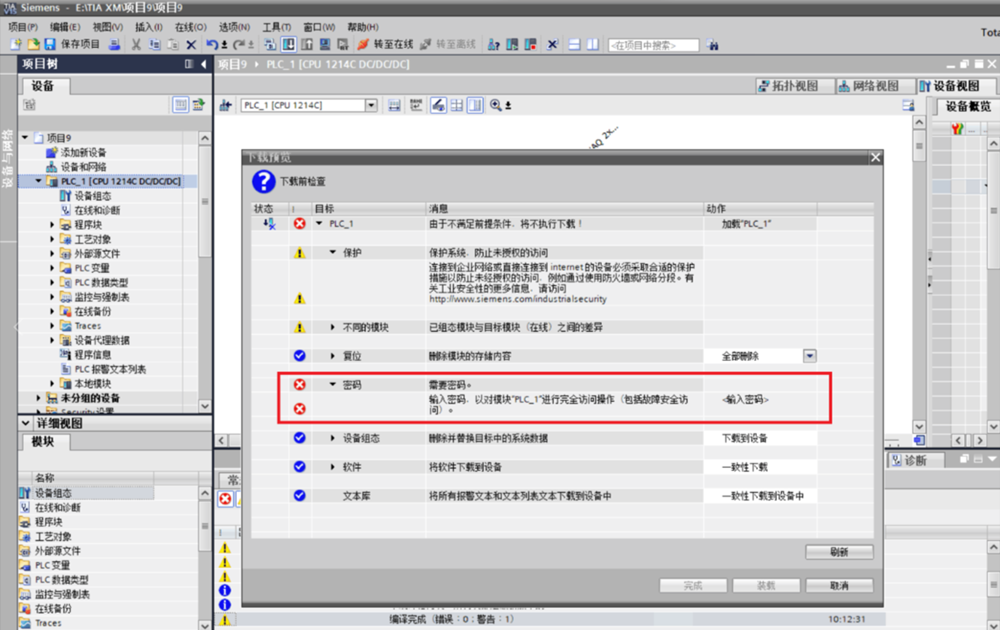 在PLC编程后需要下载时,总会出现版本不兼容问题,或者是有时候出现下载不了的问题,如下图所示: