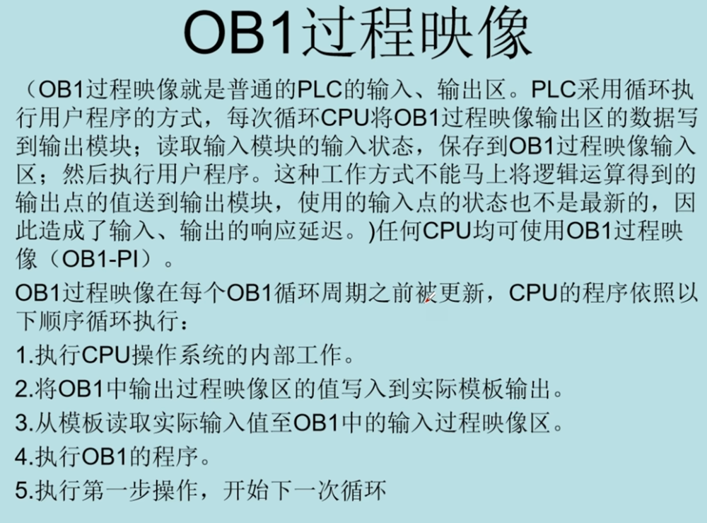输入输出映像区,及OB1过程映像区在每个OB1循环周期之前被更新;执行顺序如下图所示: