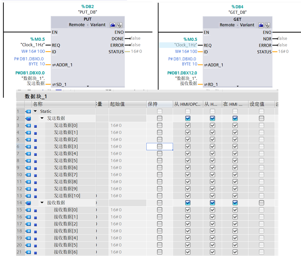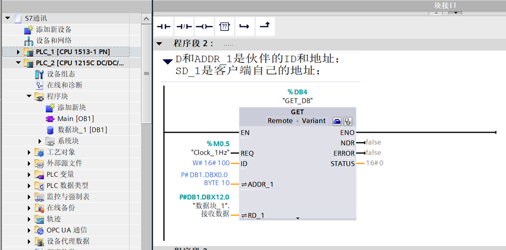 同理,在客户端的主程序中拖放一个GET接收数据指令,填写相关引脚;RD_1是客户端中的接收数据块;