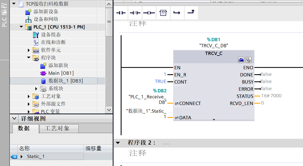 S7-1200或1500如何通过TCP接收扫码枪数据