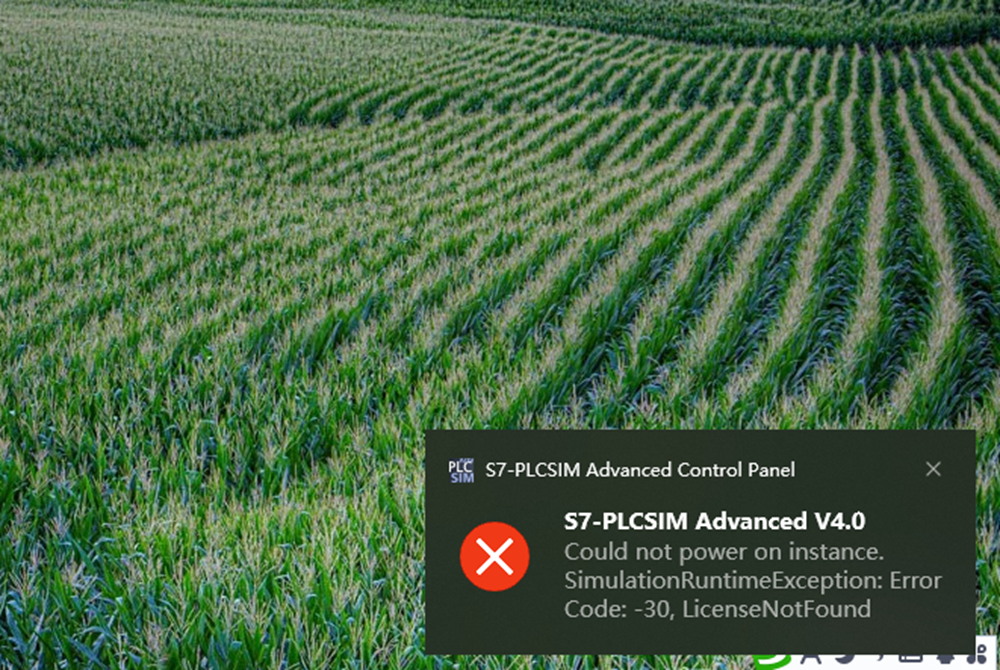 在PLCSIM Advanced V4上电启动时会提示以下报错;