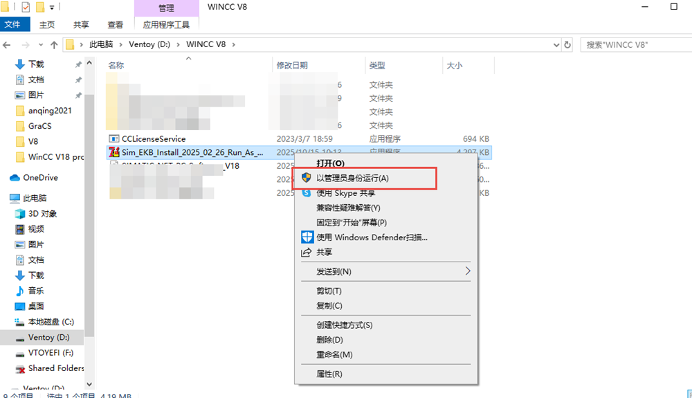 - 找到【Sim_EKB_Install…】程序,右键选择【以管理员身份运行】。这步是安装密钥管理,也很关键。