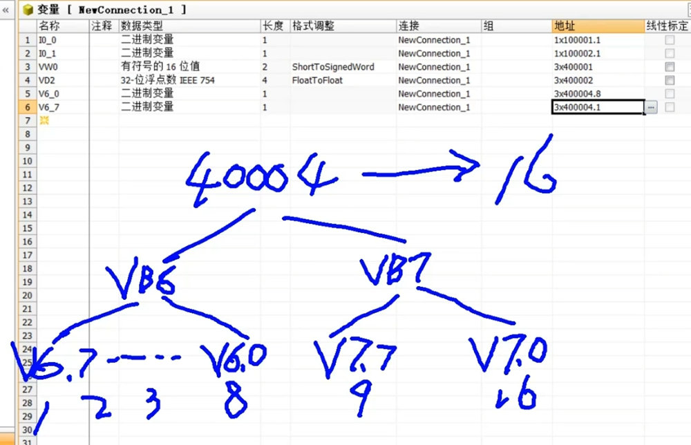 比如v6.0这个地址怎样么写呢?要计算好这个Modbus地址;