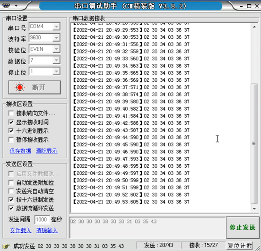 此时可以向下位机PLC进行发送数据,进行通讯;