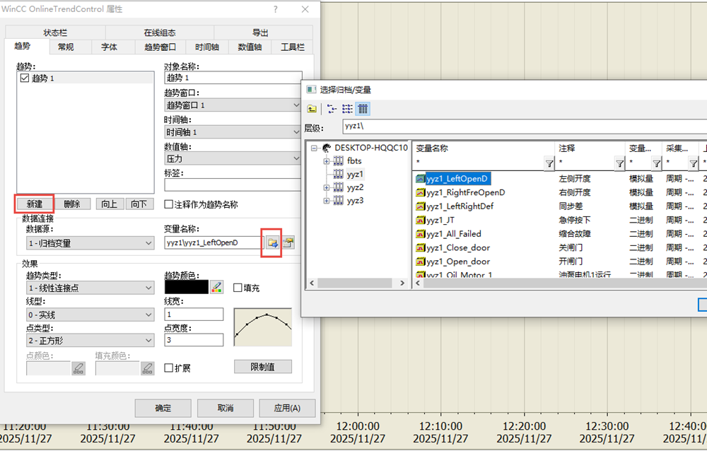 在WinCC OnlineTrendControl中对上一步变量记录的归档,然后趋势中进行曲线显示;