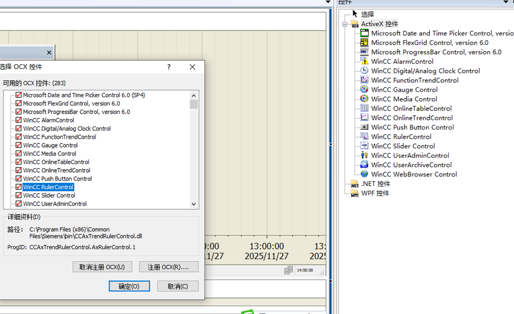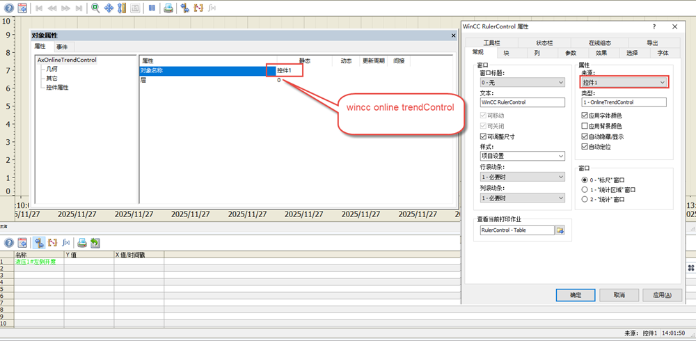 将两个控件wincc online trendControl和Wincc RulerControl进行关联;wincc online trendControl控制的名是Wincc RulerControl的来源