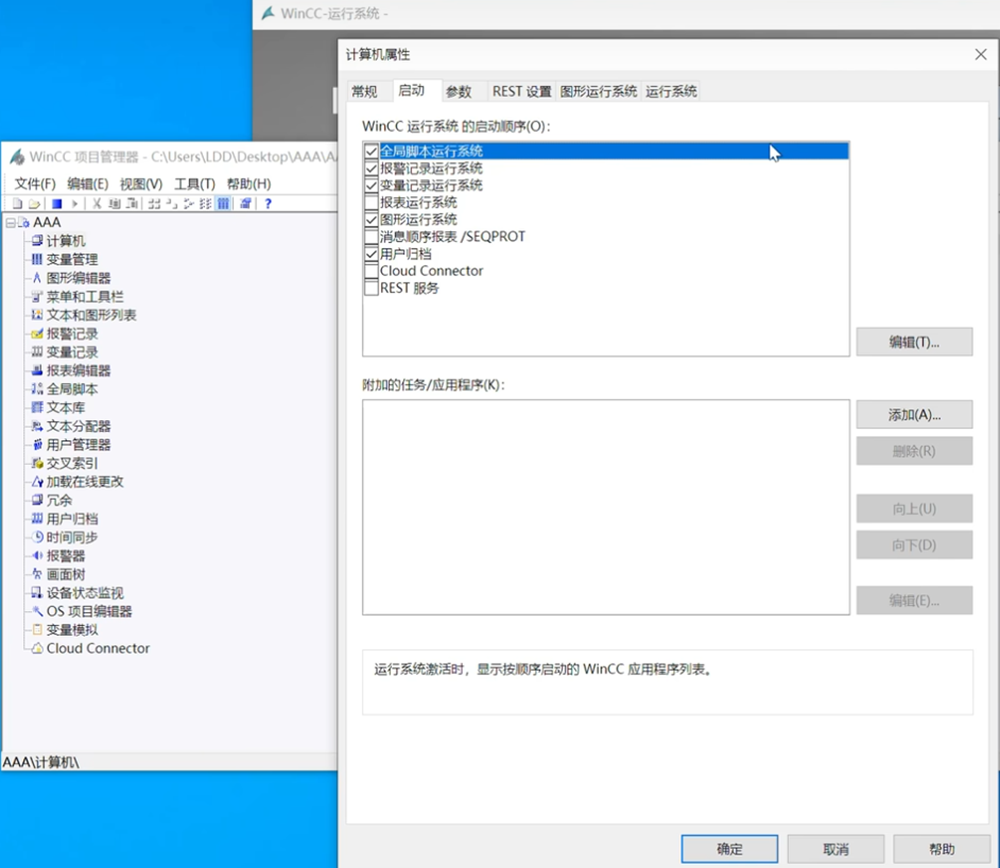 在wincc的计算机属性中要勾选全局脚本运行系统和报警记录;