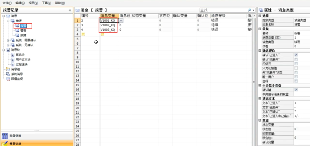 2、在消息——错误—–报警——-添加触发按钮或触发位;