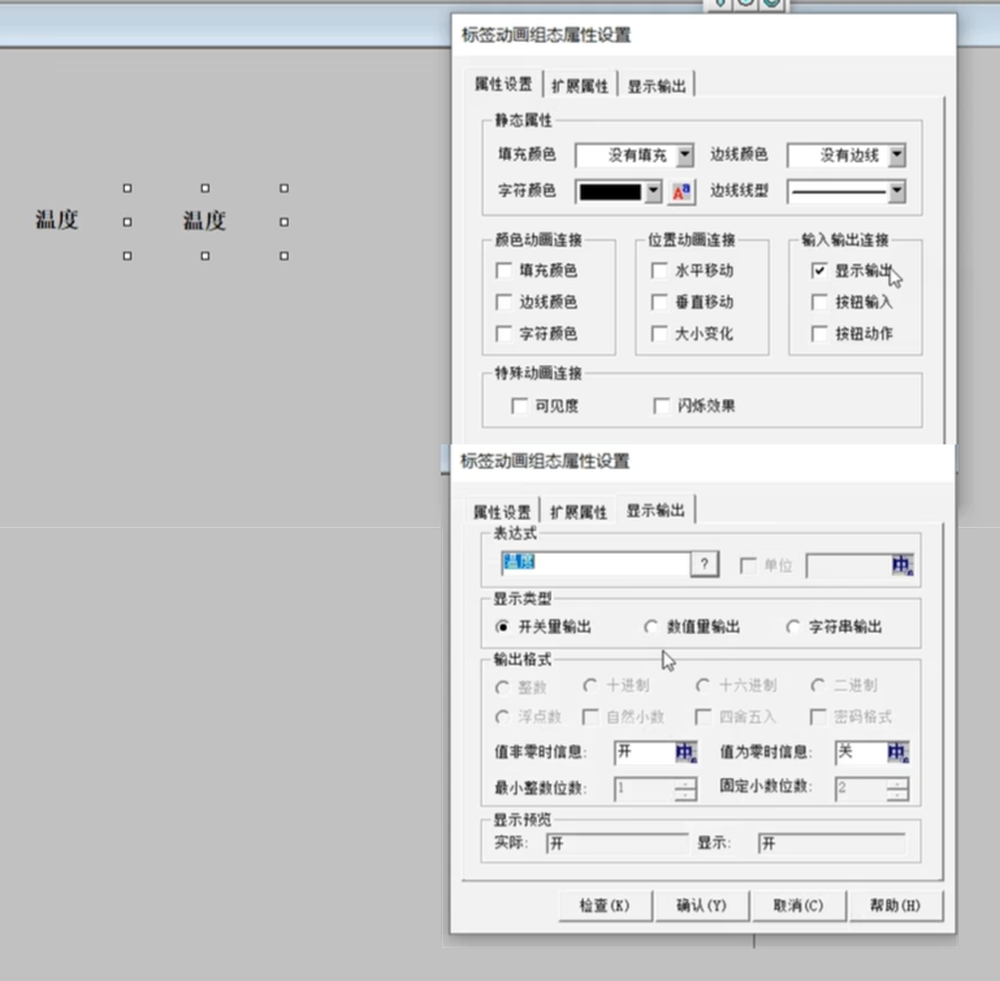在文本标签中设置为显示输出变量,和显示输出的特性;