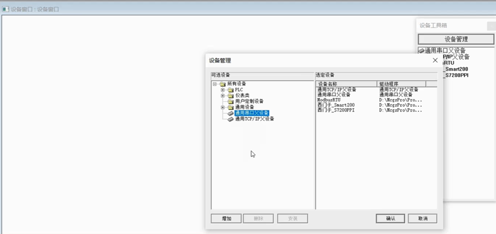选择设备窗口,添加一个通用串口父设备