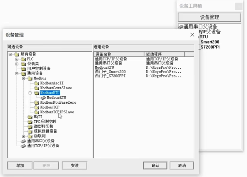 再添加一个ModbusRTU在通用设备中可以找到。