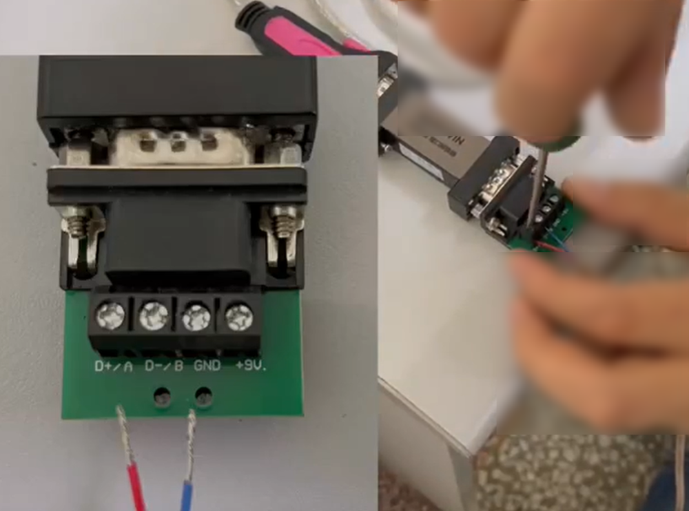 一端接变频器的29、30端子,另一端分别接RS485 to USB的A+、B-;