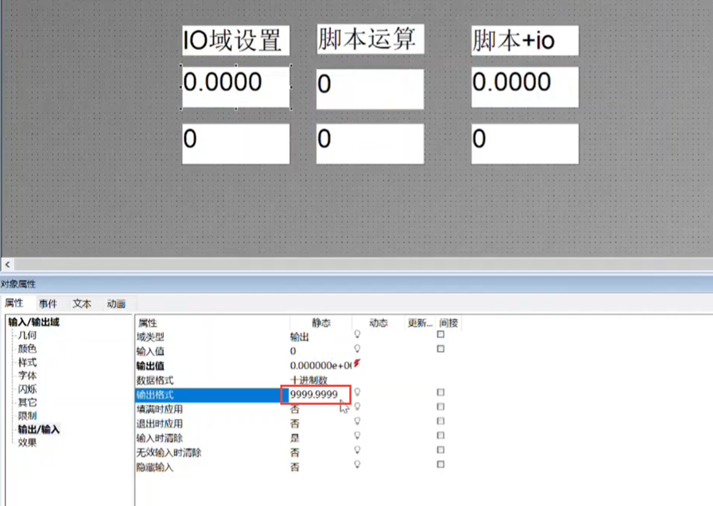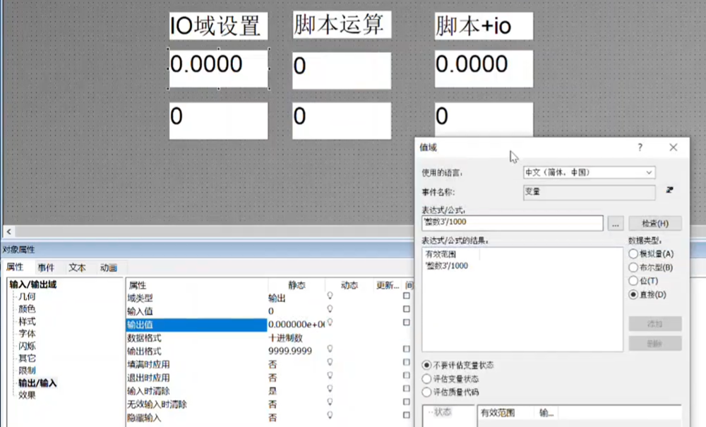 也就是说输入框的类型就是一个整数,它只能用于一个整数的计算,如果要浮点数运算,这样IO域设置就行不通了。只能通过脚本来实现了。