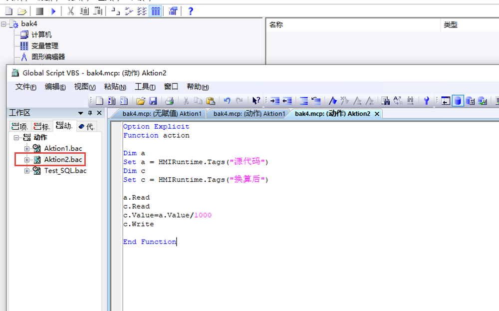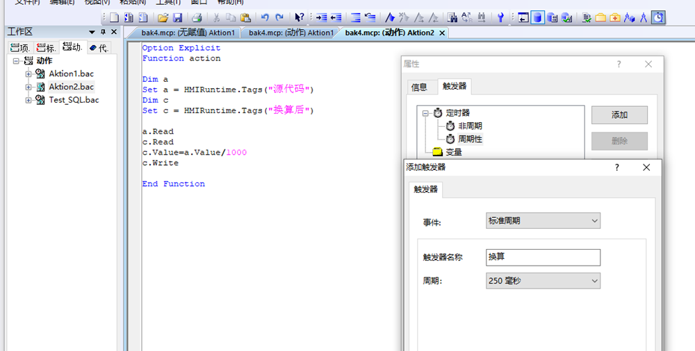 在wincc中经常会遇到对数据进行简单的运算,也就是IO中的数据进行科学计算,运行得到自己想要的结果;比如对数据除以1000等。