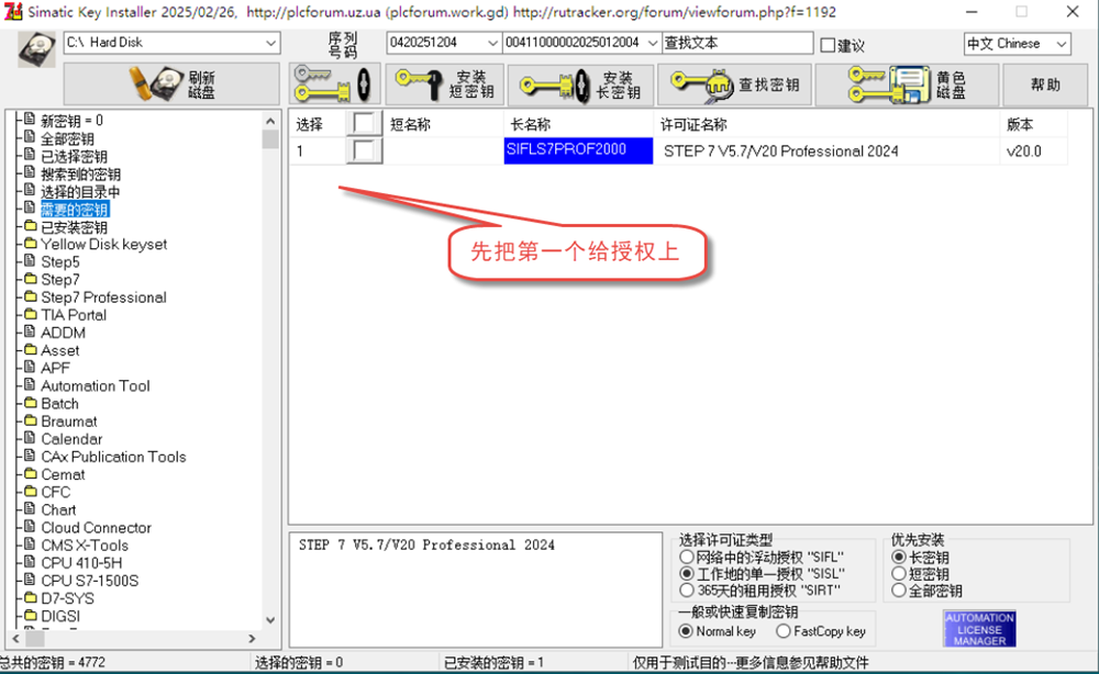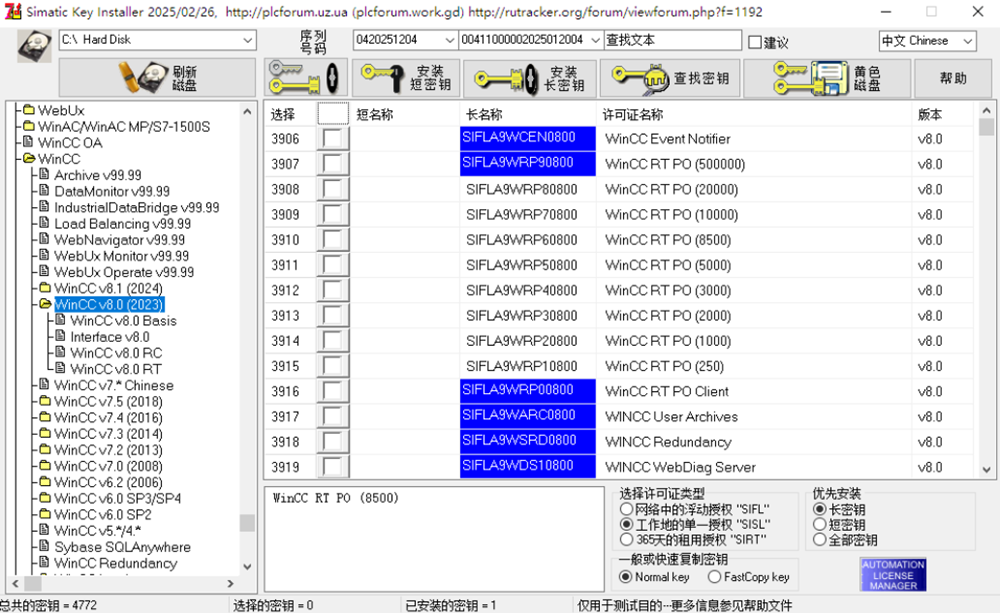 wincc V8安装完后会显示已授权,也就是能让用个一段时间后就不行了。也就是还是需要授权的。