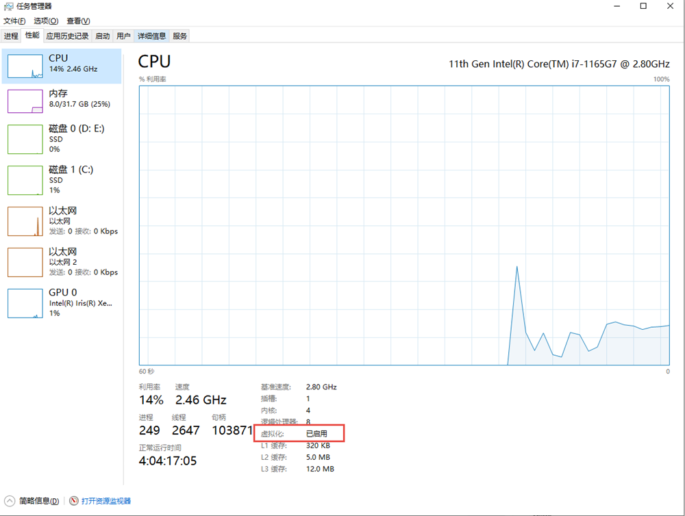 首先确保电脑系统打开了虚拟系统,如下图所示,如果是禁用模拟器是无法打开的。需要在电脑重启时按del键进入BIOS系统进行打开VT。