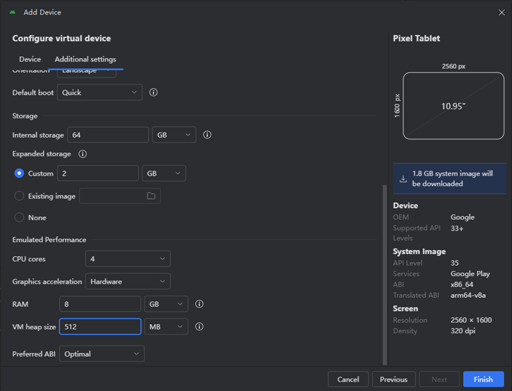 选择推荐的,并在高级中将存储改为64G,这个是动态占用的,用多少占多少; 内存2G改为8G