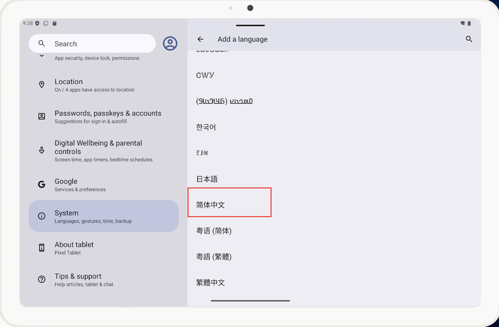 打开平板系统以后,进入系统—–语言—–添加中文并上移成为首选语言。