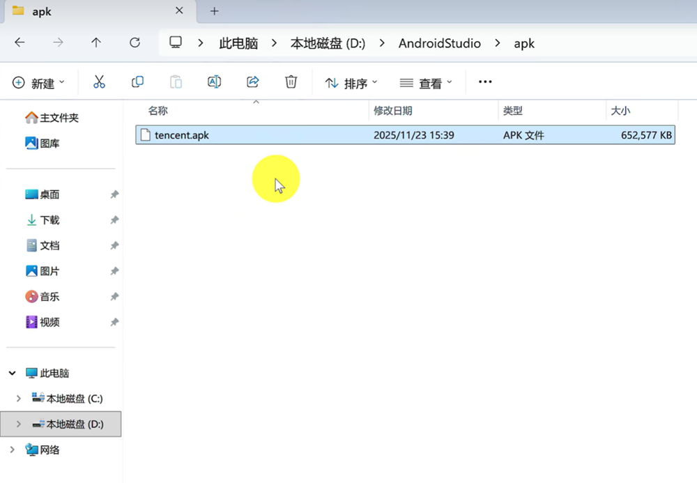在AndroidStudio目录下新建一个apk文件夹,用于存放apk安装程序。