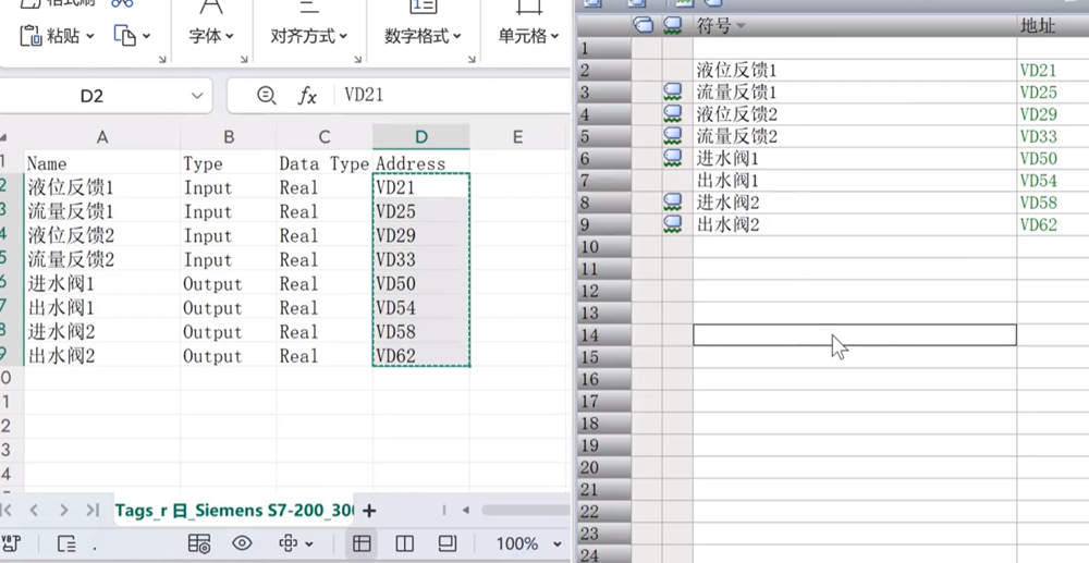 FactoryIO导出的变量表粘到200 SMART PLC的符号表中