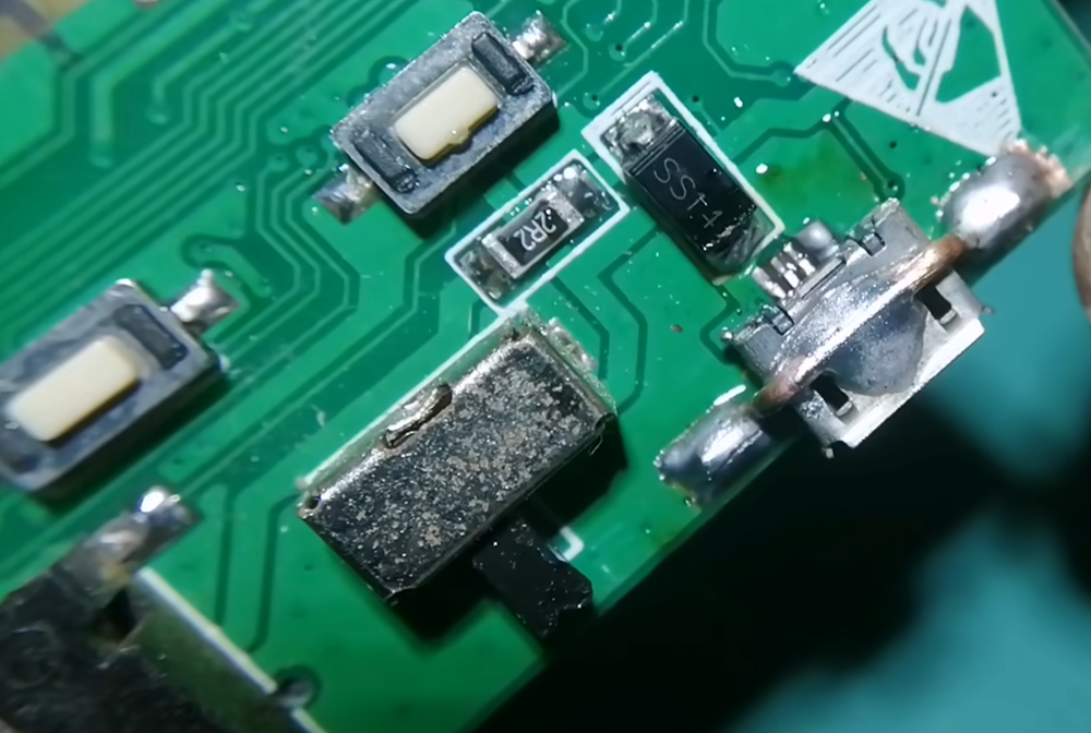 3、用锡浆中和一下焊点,防止温度过高将其它周围小元件吹虚焊;将焊点补到大小均匀即可