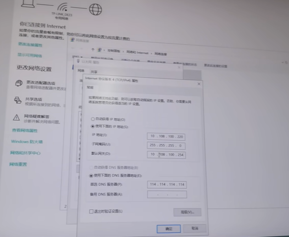 IP地址:10.108.100.200 子网掩码:255.255.255.0 默认网关:10.108.100.254