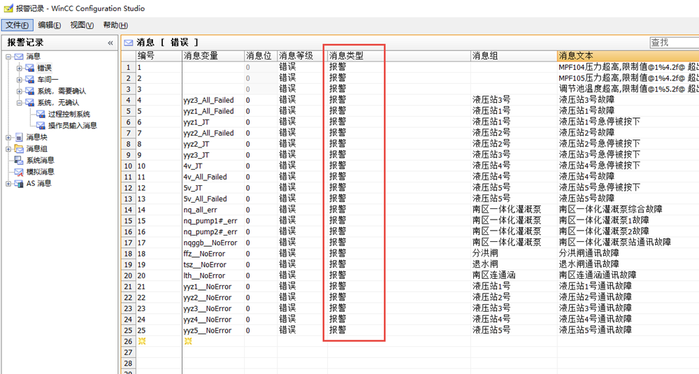 - 将报警记录的消息类型选为报警,这样才能与操作记录分开。