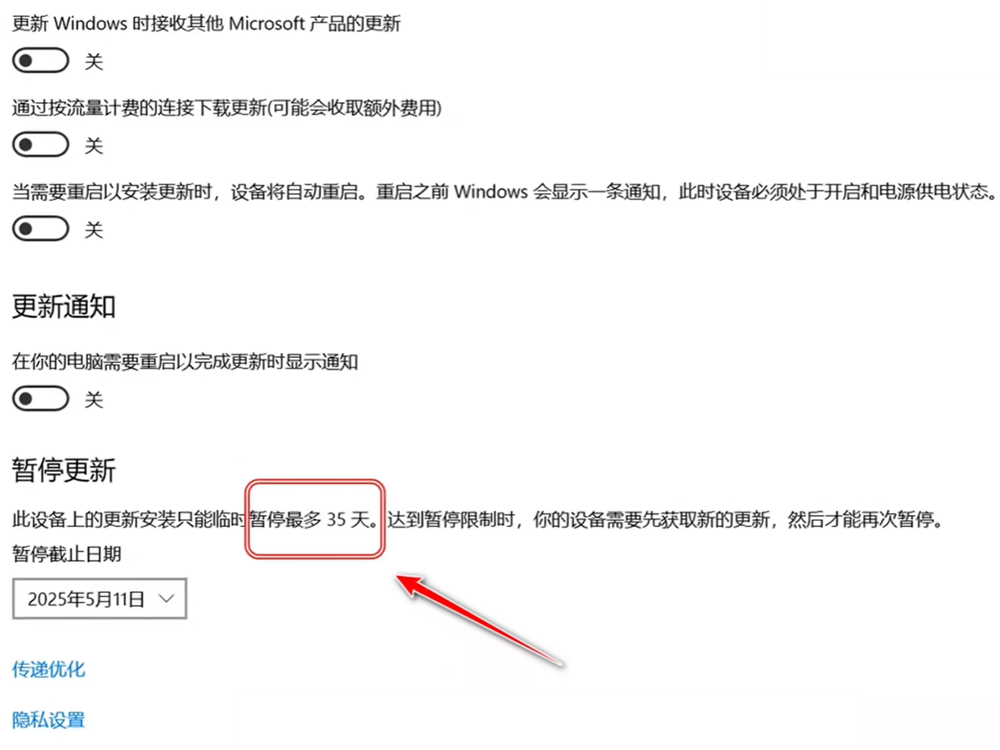 ◆ 它是利用windows自带的暂停更新功能,默认只能暂停35天。