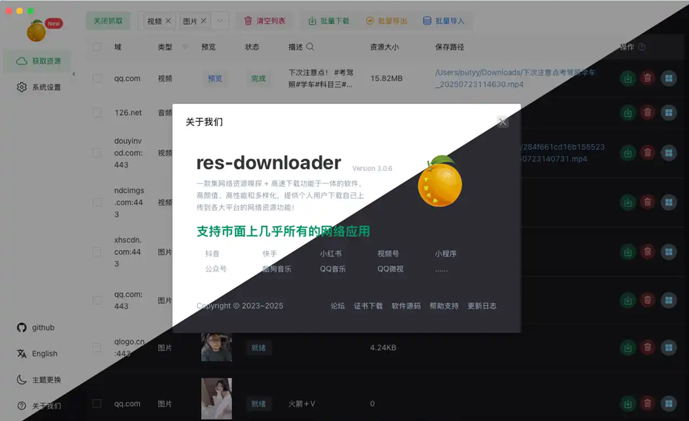 一款跨平台资源下载工具,简洁易用,支持我种资源的嗅探与下载;