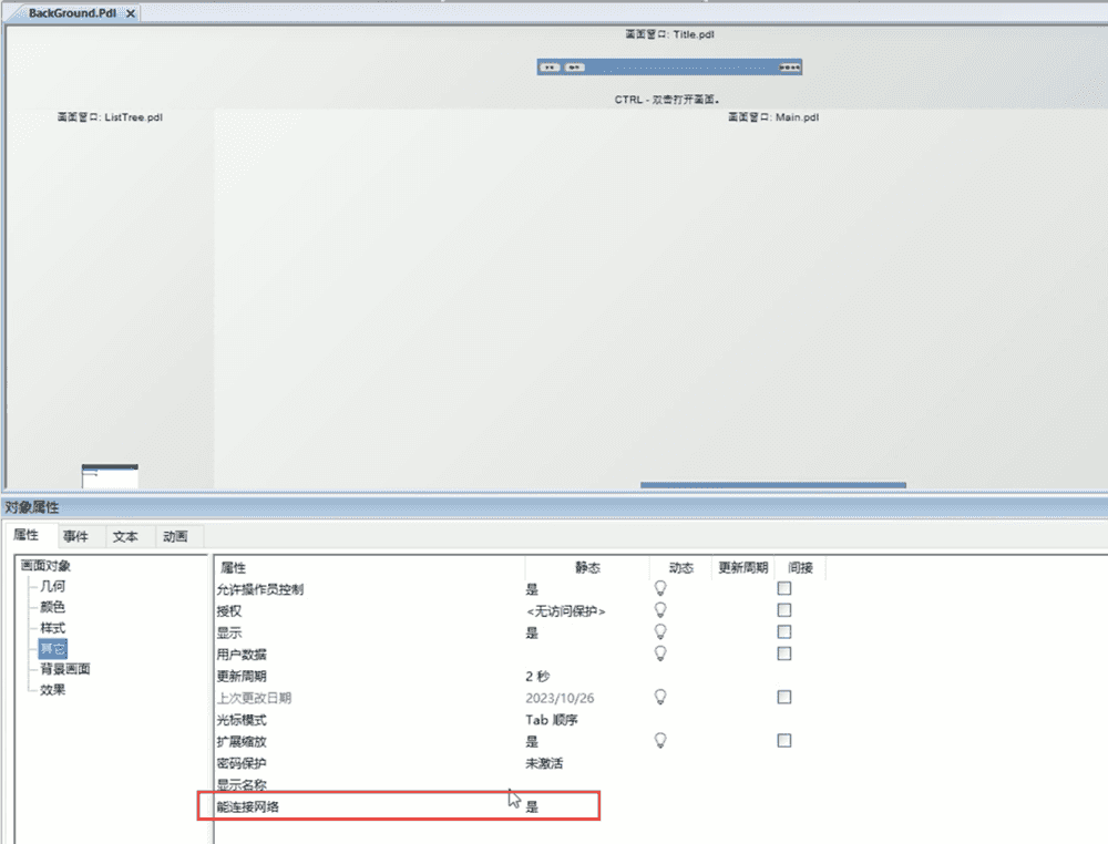 打开或新建一个测试项目(如 test1)。在需要发布的画面属性中,找到其它选项卡,将“能连接网络”设置为是。注:所有需发布的画面都需执行此操作。