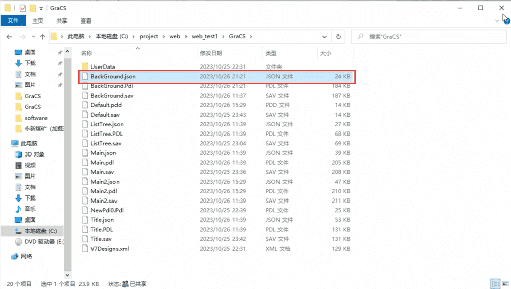 保存画面后,在项目路径的 GraCS 目录下会生成对应的 .json 格式文件,这是 WebUX 使用的核心文件。