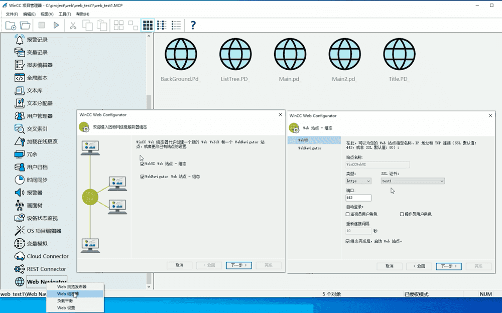 在左侧树列表中找到 Web Navigator,右键选择 Web 组态器。根据需求勾选组件,WebUX 配置时需要新建一个证书,其余参数保持默认即可。