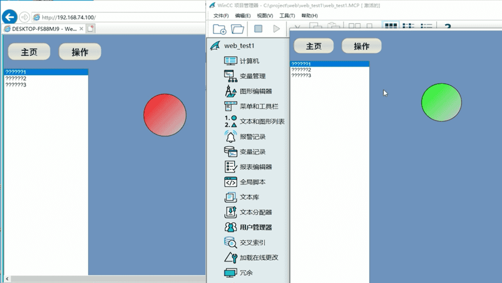 激活 WinCC 项目。在浏览器地址栏输入服务器 IP(如 http://192.168.74.100),输入用户名和密码登录。