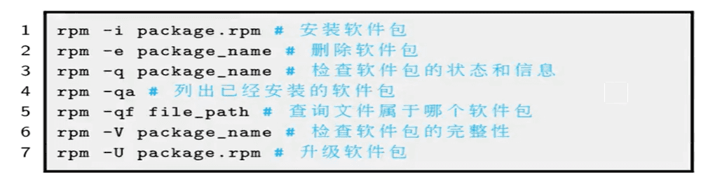 rpm -ivh xxxx.rpm #rpm包的安装 rpm -qf `which zsh` #查zsh命令是由哪个包安装的; rpm -qpl /mnt/Packages #在软件没有安装之前查会产生哪些安装文件和命令; rpm -Uvh /mnt/Packages/lrzsz-0.12.20-36.el7.x86_64.rpm #对现有软件进行升级 rpm -e zsh #卸载软件;