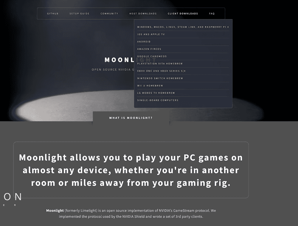 可以在平板电脑 iPad 或手机里安装 moonlight,也可以在官网或 github 上下载对应的版本;它是作为串流的接收端;然后在这里可以设置一些东西,比如屏幕的分辨率、可以读到本地的分辨率 720p、帧数 60FPS; 也可以将电脑中的声音转到 iPad 上;