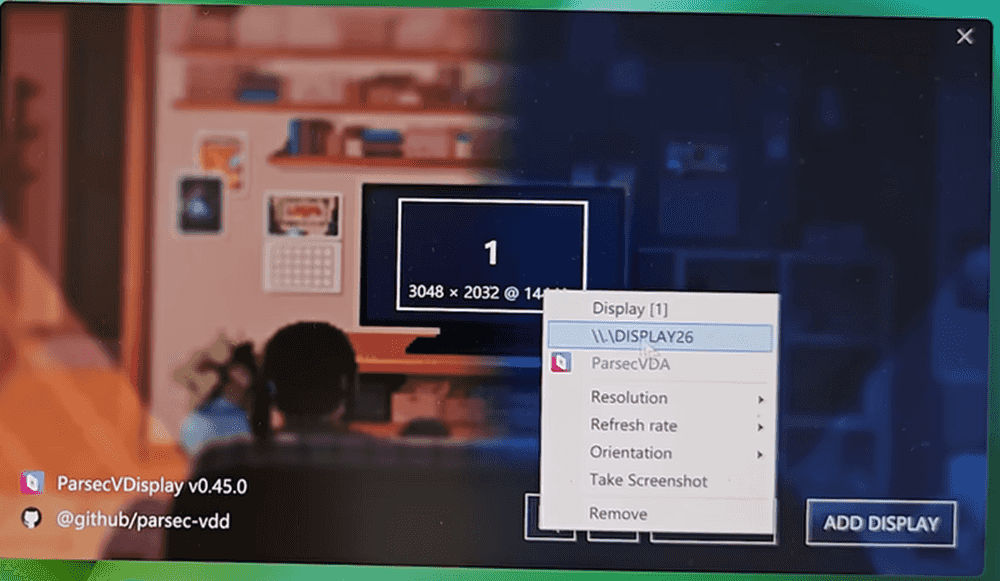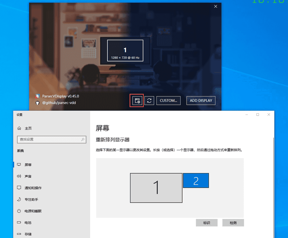 点击 ParsecVDisplay 软件的设置发现虚拟显示器的参数都已经有了。此时再连接就作为 Windows 电脑的一个副屏了。
